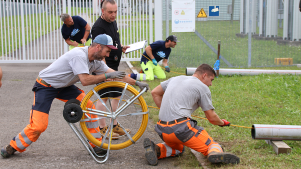 Die Aufgaben reichten von Stangenklettern über das Kabelverlegen bis hin zu einem Seilziehen mit Starkstromkabel sowie einem Quiz über Fachbegriffe und Vorschriften. Das gemeinsame Manövrieren einer Kabelrolle über zahlreiche Hindernisse sowie ein Kabelzielwurf in alte Betonkanäle gehörten zum Programm und forderten die Teams heraus. Alles Disziplinen, die Kondition, Wissen, Teamgeist und Präzision erforderten – Eigenschaften, die im Arbeitsalltag unverzichtbar sind.